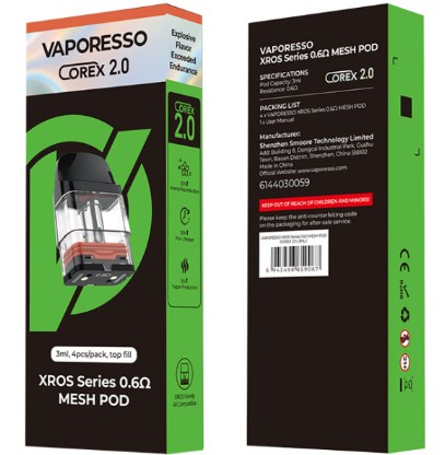 El Xros Pod Corex 2.0 Pack incluye 4 pods de alta calidad, cada uno con capacidad de 3 ml y tecnología avanzada Corex 2.0 que mejora la experiencia de vapeo.